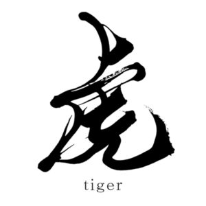 The kanji symbol for ‘tiger’ is shown here. Tigers are symbolic of strength and courage in Japanese culture, making this a powerful choice for a tattoo.
