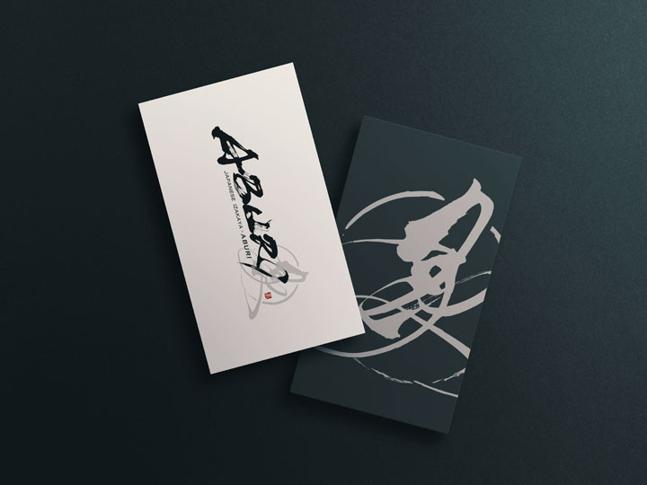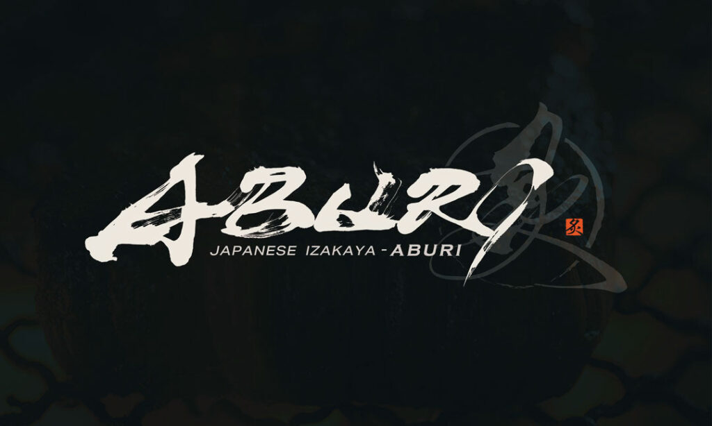 The brush lettering for ABURI captures the feeling of fire and aroma through rough edges, broken strokes, and shifts in pressure.